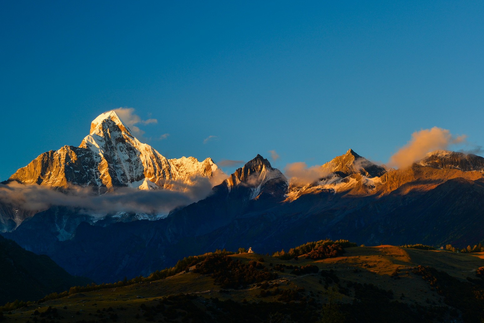四姑娘山幺妹峰日照金山